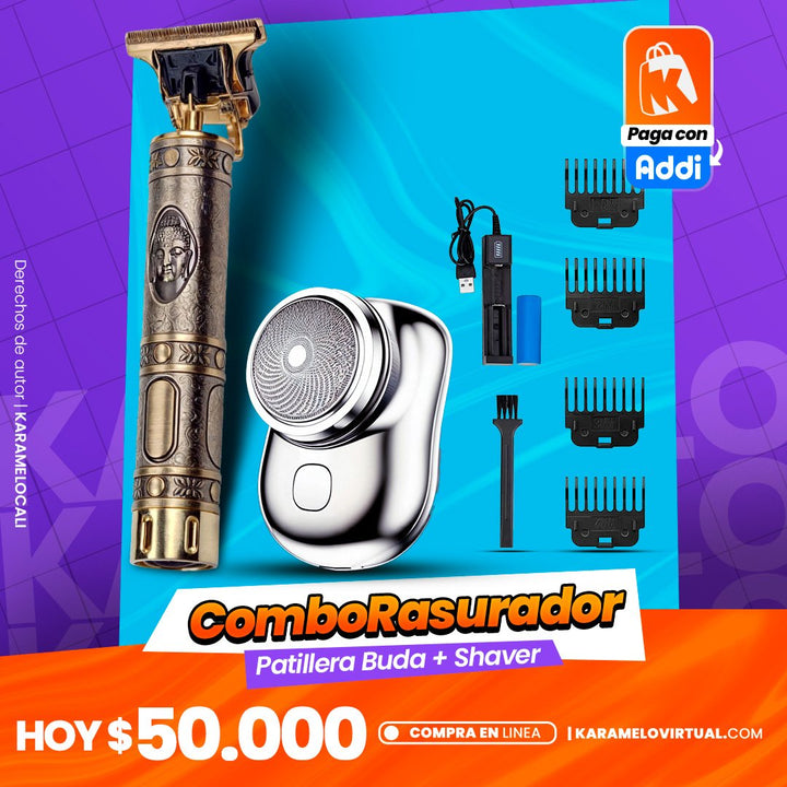 ✨🧔🪒 ¡Eleva tu experiencia de afeitado a un nivel superior con nuestro exclusivo Combo Rasurador! 🌟 Este combo perfecto incluye nuestra mini shaver para un afeitado preciso y rápido en cualquier momento y lugar, junto con nuestra prestigiosa barbera Buda, diseñada para ofrecerte un afeitado suave y lujoso con un toque zen. 💈🔥