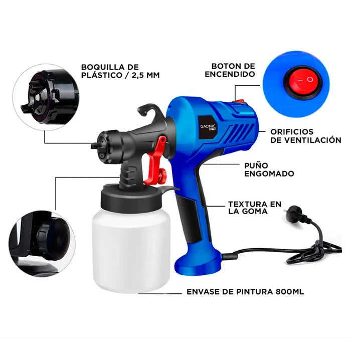 Multifuncionalidad en la pulverización con un amplio rango de aplicaciones, puede ser utilizado para rociar pintura, pintura de látex, barandillas domésticas, muebles de suelo, vehículos, etc.