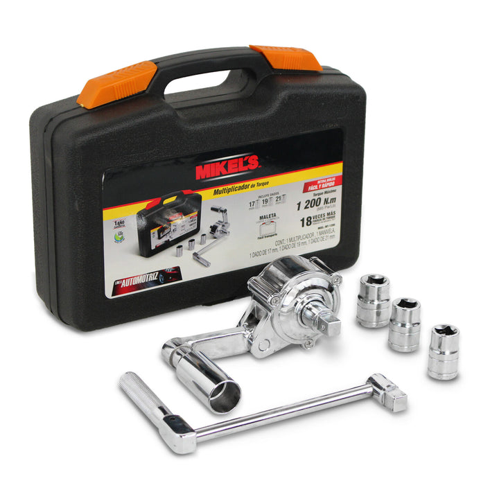(1 llave inglesa + 3 enchufes (Copas 17mm 19mm 21mm). Perfecto para rotaciones rápidas de neumáticos o averías.