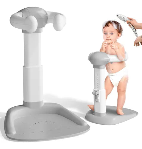 [Regalo]: el soporte de pie para baño es adecuado para bebés meses y es un regalo ideal para recién nacidos y bebés. [Ajustable]: Nuestro soporte de pie para ducha de baño crece con su bebé, diseñado para evitar pellizcos para mayor comodidad y seguridad.